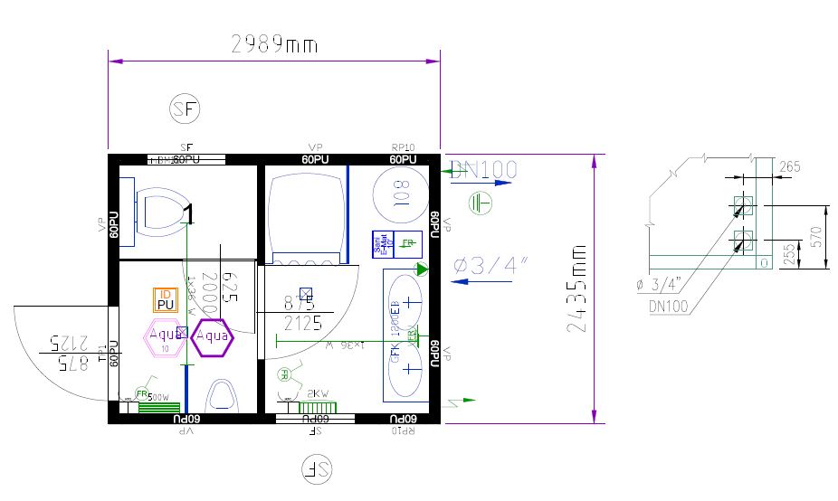 1 Urinale sowie Warmwasserboiler und Elektroheizung,